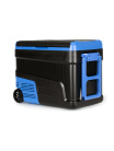 Автохолодильник Ледоход G-55 работает от 12V/24V/220V, поддерживает температуру от +20°C до -20°C, оснащен защитой АКБ, тихим компрессором и управляется через приложение со смартфона.